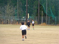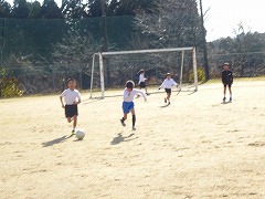 ↑ みんながいるから遊べます。長休みも寸暇を惜しんで元気にサッカーです。今日は比較的温かいので?半そで?