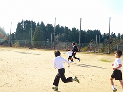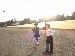 ↑ 太陽の光を浴びての運動が、セロトニンの分泌を促し、心の安心につながります。そして、集中して学習ができます。