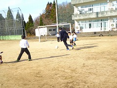 ↑ そして、昼休みは外で太陽の光を浴びて元気にサッカーです。セロトニン分泌を促すことができました。運動場に行くと、「〇〇さん、こっちチームね」とすぐに声をかけてくれます。誰もが自由に入れるサッカー遊びで楽しいです。