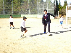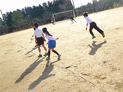 ↓ 休み時間には、太陽を浴びて元気にサッカーです。