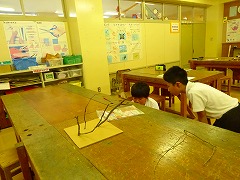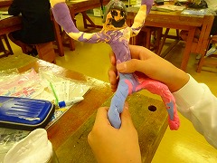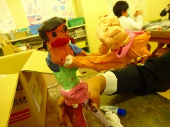 ↑ 5・6年図画工作 「6年生は12年後のわたし」夢を追い続けている姿、社会で活躍している姿を思い描き創りました。すごく伸びる紙粘土です。絵の具を混ぜて、着色も工夫しました。↓5年生は、針金アートです。ペンチを使って、針金を曲げたり、丸めたりタワーや夢の木等、想像力を働かせて創りました。