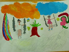 ↑ 1年図画工作 絵の具での色の塗り方を工夫しました。