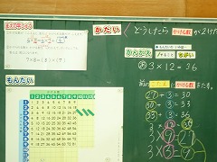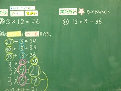 ↑ 2年算数 かける数が2けたの時はどのように求めるのか、考えました。