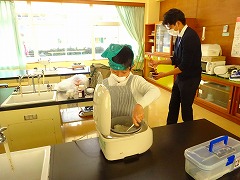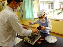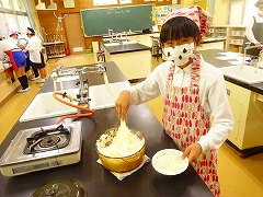 ↓ 5年家庭科 ご飯とみそ汁の調理実習です。ごはんを鍋で炊き上げています。火加減をしっかり調節しています。