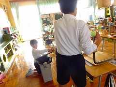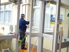 ↑校務員さんは、外の大掃除をしてくださっています。窓がピカピカになりました。ありがとうございます。