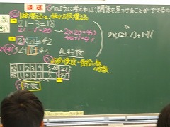 ↑ 6年算数 関係性を見つける学習です。表を書いたり、図から式を考えたりと、考えを自分で説明できるようにしています。