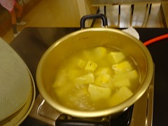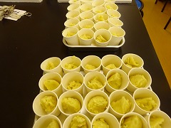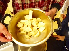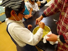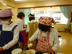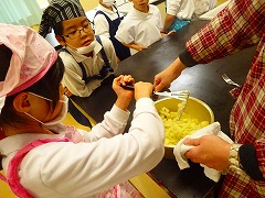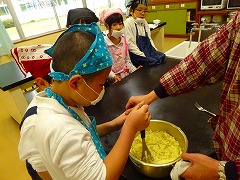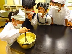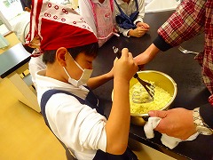 ↑ 2年生 生活科 畑の先生からいただいたサツマイモでおせち料理の「きんとん」を作りました。洗って、切って、ゆでて、つぶして、盛り付けました。いいこといっぱい集まってきますように。