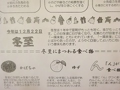 昨日は冬至、1年で一番昼の長さが短い日でした。かぼちゃを食べてビタミンAを摂り、ゆず湯に入りました。これで、風邪もひかないでしょう。「一陽来復」、このあとは日がどんどん長くなり、春に向かっていきます。今日は、「冬至が過ぎた!」と感じるぽかぽかな日差しの一日です。