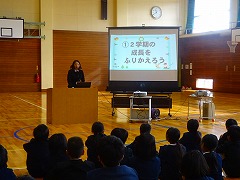 3つ目のお話は「自分の命を自分で守る」ことです。用水やため池に近寄らない、飛び出さない、火遊びはしない、そして「ストップ病気」これは、ゲーム依存症もふくみます。安全で成長し続ける冬休みをお過ごしください。