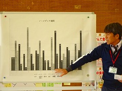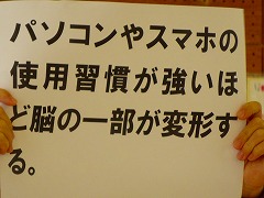 ↑ 生徒指導の先生から、すくぐん調査結果から、ゲームについての「怖いお話」をお聞きしました。すくぐん調査から、ゲームをしたいだけしている人が、1週間のうち後半の曜日になるにつれて、多くなっていることが分かりました。スマホやタブレットでゲームを1時間する毎に、算数のテストの点数が低くなっているという実態調査があります。また、怖いことに、ゲームをしすぎると、脳が変形してくるそうです。冬休みゲームをたくさんしようと思っている人は、今日のお話を受けて、ぜひ考えてほしいと思います。