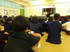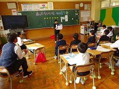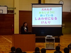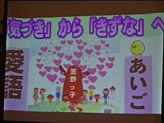 ↑ 今日は人権週間にちなんで、人権についてお話しました。笠野小の校訓「愛語」は人権尊重につながります。