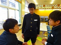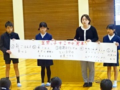 ↑ 「見たいテレビがあるから、遅くまで起きている」「親戚の人が来るので遅くまで起きている」という意見や「1年の計は元旦にありだから、年の初めから守れないと、1年間ずっと規則正しく生活しないようになる」、「毎日続けることが自分の健康のためだから、お正月も10までに寝る」「お正月だからこそ次の日は元気に過ごしたいので10時までに寝る」等、意見を交流しました。話し合っていろいろな意見にふれ、さらに自分の考えを再考しました。さて、来年のお正月3日間は、実際何時に寝るのでしょうか。いろいろな意見を聞くのが楽しくなる「みんなで話そうタイム」です。