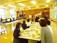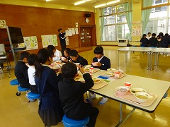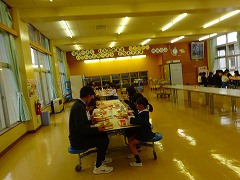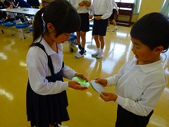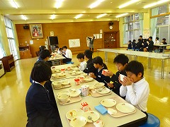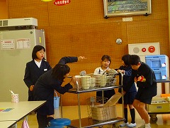 ↑ 今週は1年生と5年生が給食当番でした。5年生はお手本をしっかり見せ、やさしく教えていました。1年生はしっかりと仕事をしてくれました。