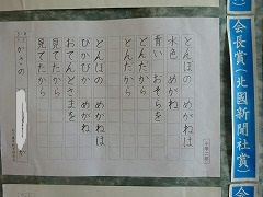 県庁19階ロビーで石川県硬筆書写コンクールの優秀な作品が展示されています。本校の2年生児童が、素晴らしい賞を受賞しました。美しい字を見ると、すがすがしい気持ちになり、心が洗われます。