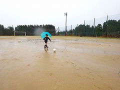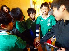 ↑朝休み、雨が降ってもサッカーをしたい!元気な笠野っ子です。一緒にシュート練習をしました。