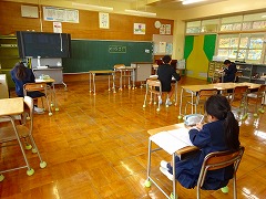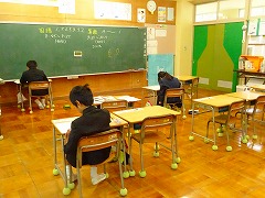 ↓今日は力試しの日です。県の評価問題、津幡町の学力調査、校内の力試しを全校一斉に行いました。1限目は国語、2限目は算数です。