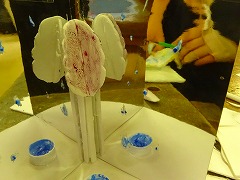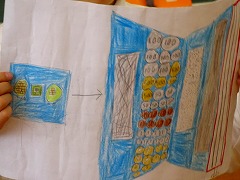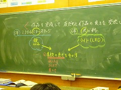 ↑ 5,6年図画工作 設計図を描いて想像を膨らませています。鏡に映るミラクルミラーステージとLEDライトが中に入ってライトが醸し出す美しさを表現する作品作りです。