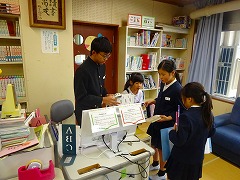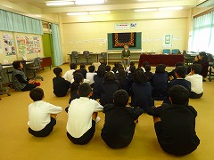 ↑ 火曜日は昼休みと掃除の時間を利用して読書タイムです。今日は、地域の「金のがちょうさん」をお招きして、お話会を開いていただきました。「これは、6年生が1年生の時に読んだ絵本ですよ」と話してくださり、6年生は大変懐かしく聞いていました。長年読み聞かせをしていただき、子供たちの心は栄養たっぷりで成長しています。これからもよろしくお願いします。6年生は自主的に部屋の後片付けに動いてくれます。
