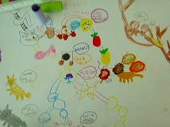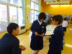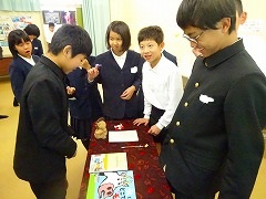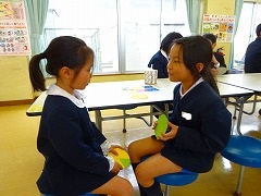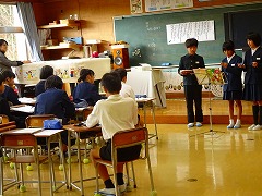 ↑ 2年生が考えた「あったらいいなこんなもの」を1年生を招待して、はぴょう会をしました。なぜ、これがあったらいいのかわけを話し、その働きについて説明しました。聞いている人はイラストを見ながら聞くことができたので、イメージが広がりました。それぞれに工夫があって、よく考えたものだと感心しました。聞いている人も質問や感想をたくさん伝え合うことができました。
