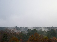↑ 今朝も素晴らしい天気です。朝霧が幻想的な雰囲気をさらに引き立てています。