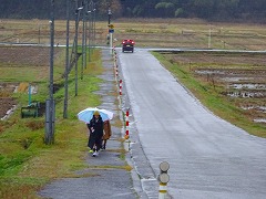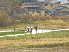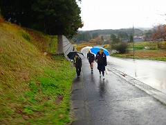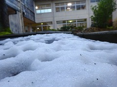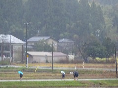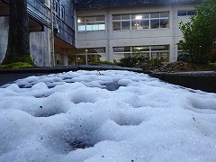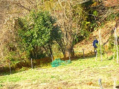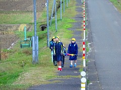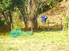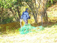 ↑ 校務員さんが、中庭のイノシシ除けの以前の緑のネットの後片づけをしてくださっています。いつも学校の環境を整備していただきありがたいです。