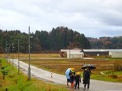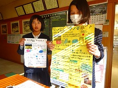 ↑総合の「市谷米」グループがPRパンフレットを見せに来てくれました。「市谷米」を知らない人にも是非食べてみたいと思ってもらえるようにと願いを込めて作っています。
