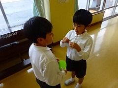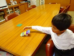 ↓ 1年生が自分で作ったおもちゃを見せに来てくれました。シーソーです。発想力が素敵です。