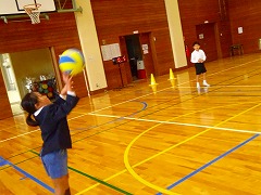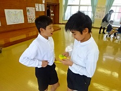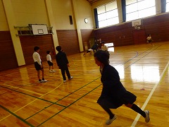 ↓ 長休みは体育委員会さん主催の、シャトルボールです。シャトルボールは、石川スポチャレ種目の一つで、学年ごとに決められた距離を(低学年は5m、中学年は7m、高学年は9m)離れて、ボールを投げて相手の人がそのボールをキャッチします。うまくキャッチできれば2点、バウンドなどがあれば1点得点が入ります。時間は3分間です。