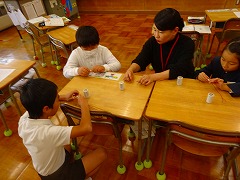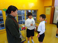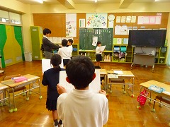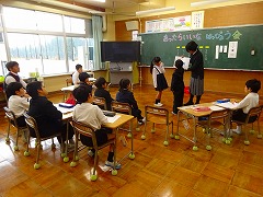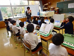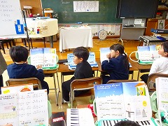 ↑ 1.2年生音楽 鍵盤ハーモニカのテスト?でしょうか、一人ずつ演奏していました。1年生もずいぶん上達しました。