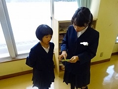 ↓ 長休み、2年生が校長室に来て、頑張った九九を聞かせてくれました。タイムを測ると、5秒台、4秒台とすらすらに暗記しています。ここまで覚えるのに、たくさん練習したことでしょう。努力を大いに称えたいです。