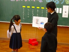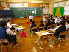 ↑3.4年道徳 親切について学習しました。授業のはじめでは、親切な人とは「すぐに助けてくれる人」、「優しくしてくれる人」、「食べ物をくれる人」などと話していました子供たちですが、授業の最後では、「親切は自分が親切な心で接すると、相手も変わってくる、お互いの心のふれ合いが大切なのだ」という気持ちに変わっていました。