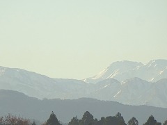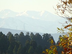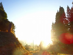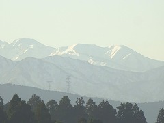 12月、晴天になるとこんなに気高い光景が見られる笠野です。雪を頂いた白山が朝日に輝いています。