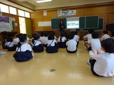6月のスタートとして全校朝会が行われました。まずは,大きな声で校歌を歌いました。そして,校長から5月の学校生活ですてきだったところや生徒指導の先生から6月の生活目標「ろうかを正しくあるこう」について話を聞きました。5月はたくさんのすてきなところがありました。6月もみんないっしょにがんばりましょう。