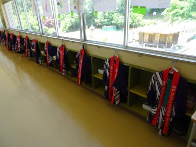 教室前廊下にかけてあるはっぴです。かっこいいなと見ていました。
