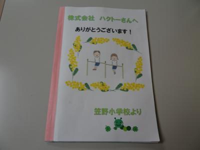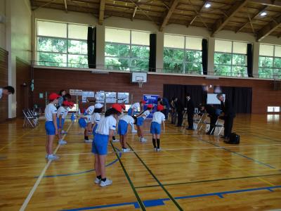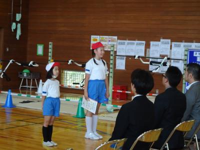 株式会社ハクトーの皆様,富山銀行の皆様が来校され,さかあがり練習器「くるっと」3台の贈呈式がありました。児童を代表して3・4年生が出席し,「くるっと」を使っての実演,お礼のことはを述べ,全校からの感謝のお手紙を渡しました。贈呈式後,さっそく「くるっと」でさかあがりの練習をしました。さかあがりができなかった2人が,短時間でみごと「こつ」をつかむことができ,「くるっと」なしでも,さかあがりができるようになりました。すごいです。ハクトー様,富山銀行様 本当にありがとうございました。