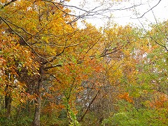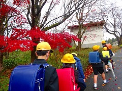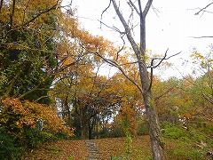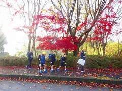 ↑ 笠野の森に自然ふれあいタイムの下見に、午前中行ってきたのですが、昼には雨となり、自然ふれあいタイムは中止となりました。夏の頃は緑濃く青々と茂っていた広葉樹も、落ち葉となり、冬の森となっていました。校務士さんが子供たちが躓かないように「くず」のツルをよけてくださいました。