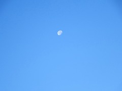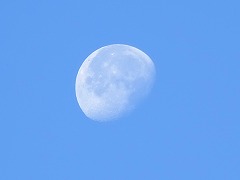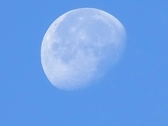 ↓西の方角です。月が残っていました。ズームで撮影してみました。15夜満月が過ぎて、月齢19の下弦の月です。11時頃、西の空に沈みます。