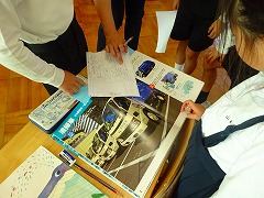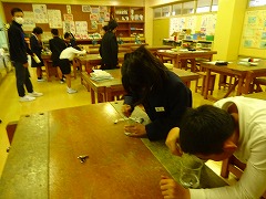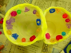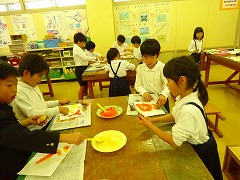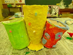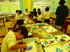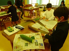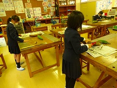 ↓ 3,4年図工 アイディアたっぷりの楽しい小物入れを製作中です。友達の作品を鑑賞することで、ものの見方の幅が広がります。