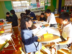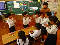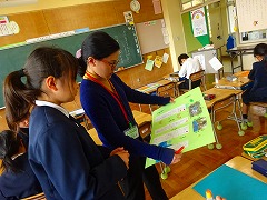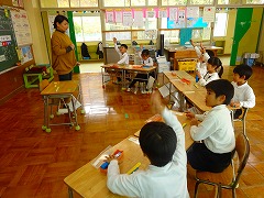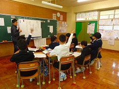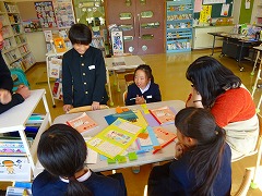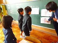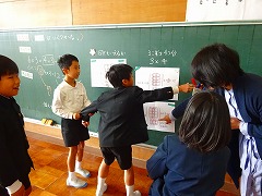 ↑ 1年生が「お手伝い大作戦」をしたことの報告会をしていました。友達の感想を聞いて、「私も同じで、大変だったけれど、ありがとうを言ってもらえてうれしかったです」などと、友達の報告を聞いて、感想を伝え合うこともできました。
