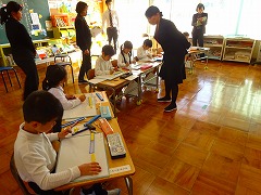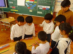 ↓ 1年 算数 校内で授業を見合って研究する研究授業を行いました。石川県教員研修センターから指導主事を招聘し、指導助言をいただいて、私たち教員も学び合っています。
