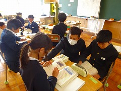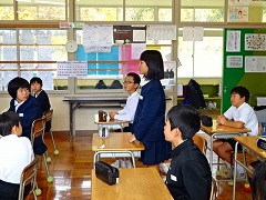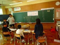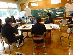 ↓ 授業の後は、授業整理会で1年生が育っていることをたくさんほめていただきました。学習ガイドは1年生は全員体験し、主体的な学びにつながっている、堂々とした発表の仕方、話し方、質問、反応の仕方等、4月からの積み上げが確実な成長となって表れています。小規模校ならではのよさを強みとして授業の中に十分生かし、確実な積み上げを続けていきたいと思います。