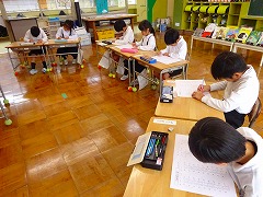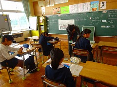 ↑県と町の評価問題に5年生、3年生は取り組みました。どれだけ力がついたでしょうか。読む力、考える力、書く力を分析し、今後の指導に生かしていきたいと思います。