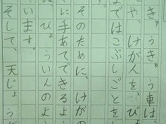 ↓ 1年 国語 言語活動として、自分の乗りものずかんを書いて、車のすごいところを紹介する説明文を書いています。「自分のお気に入り」を教材文で学んだことを生かして書くのですから、主体的な学びとなります。