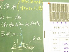 ↓ 6年理科 水溶液には何が溶けているのだろうか 溶けているものを見つけるにはどうするとよいか、においをかいだり、蒸発させたりして調べました。見方を変えると見えないものが見えてきました。