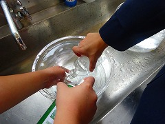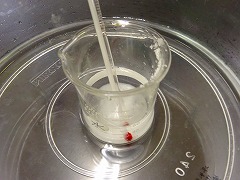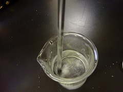 ↓ 5年理科 物の溶け方 食塩はどれだけでも水に溶けるのかな?50㏄の水に小さじ(5㏄)の食塩を4杯分溶かして混ぜているところです。溶けきるでしょうか?