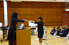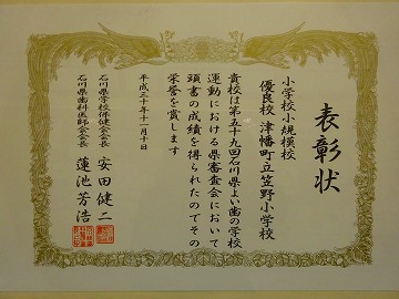 ↑ そして、よい歯の学校賞、優良賞をいただきました。給食の後、全校で歯磨き運動をして、虫歯の予防に努めていること、虫歯になった場合は速やかに治療をして歯を大切にしている児童が多いことを称えていただきました。これからも、保護者の皆様と一緒によい歯の指導を続けていきたいと思います。