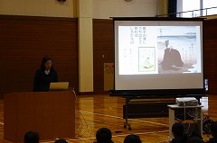 ↑ 私からは、笠野の自然が醸し出す美しさと、会長さんが鳥さんのお家のベッドを作ってくださったので、鳥を呼ぶお話をしました。図書館にある「ひさかたチャイルド しぜんにタッチ」という本に書かれている鳥の呼び方を紹介しました。自然に親しむ楽しみをもって、冬を迎えたいと思います。