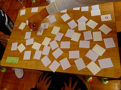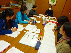 ↑ 早速、職員で問題を解いて、出来具合をみながら分析をしました。読む力をつけるために、また、説明力をつけるために、新たな工夫が必要なようです。