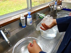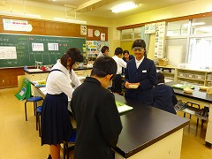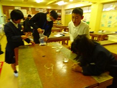 ↑ 6年理科 水溶液の仲間わけをしています。今日は水溶液の性質を酸性・中性・アルカリ性に仲間わけしました。リトマス試験紙の正しい使い方も学習しました。