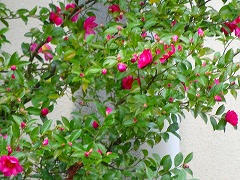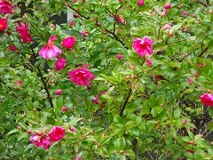 ↑ 校庭の日本庭園の山茶花(さざんか)が見事に咲いています。花の少ない時期だからでしょうか、見事さが際立ちます。